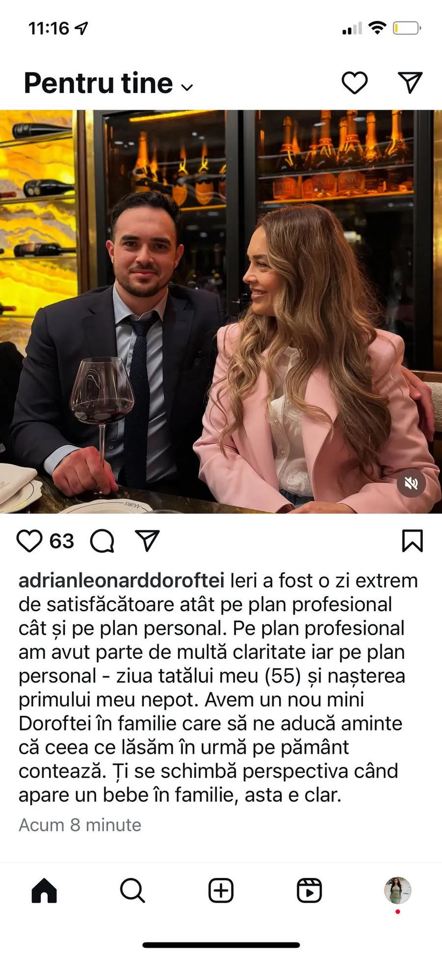 ”Ieri a fost o zi extrem de satisfăcătoare atât pe plan profesional, cât pe plan personal. Pe plan profesional am avut parte de multă claritate, iar pe plan personal – ziua tatălui meu (55) și nașterea primului meu nepot. Avem un nou mini Doroftei în familie, care ne va duce aminte că ceea ce lăsăm în urmă pe pământ contează. Ți se schimbă perspectiva când apare un bebe în familie, asta e clar”, a spus Adrian Leonard Doroftei pe social media.