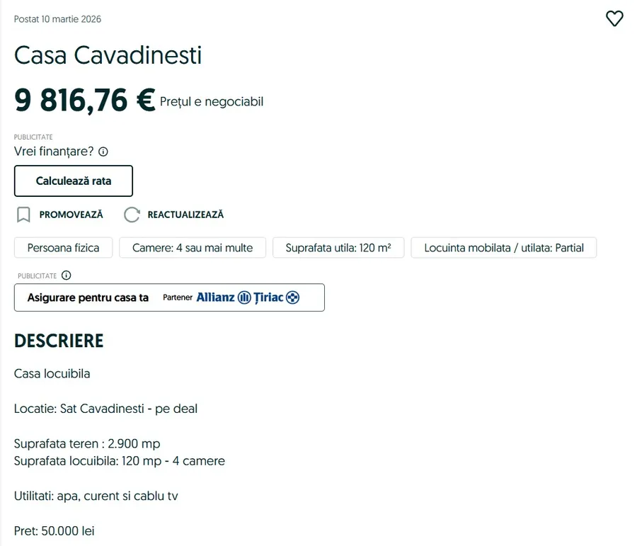 Piața imobiliară din România a cunoscut în ultimii ani o creștere semnificativă a prețurilor, însă există încă oportunități pentru cei care caută locuințe la costuri reduse. Un exemplu recent este o casă de vânzare situată în satul Cavadinești, pe un deal pitoresc din județul Galați, care oferă un preț de achiziție incredibil de accesibil, dub 10.000 de euro.