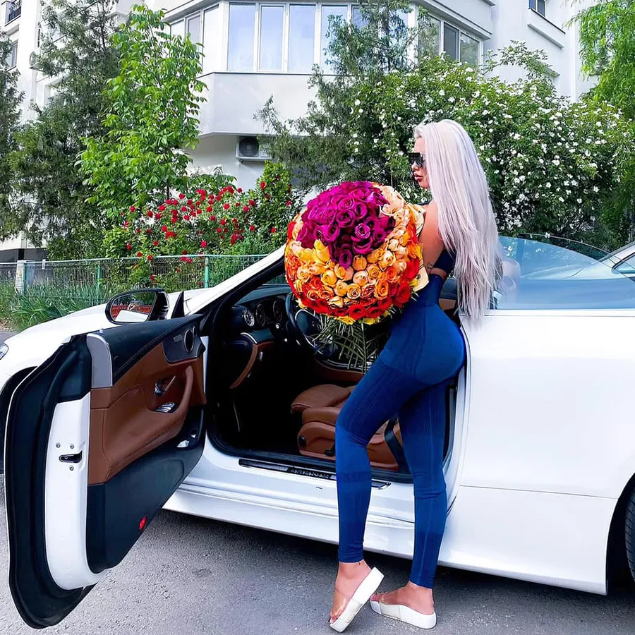 Ulterior, Loredana Chivu a postat pe pagina de Facebook o fotografie în care ținea în brațe un buchet de flori impresionant și se afla lângă un alt bolid de lux, alb și decapotabil, o cabrioletă de toată frumusețea.