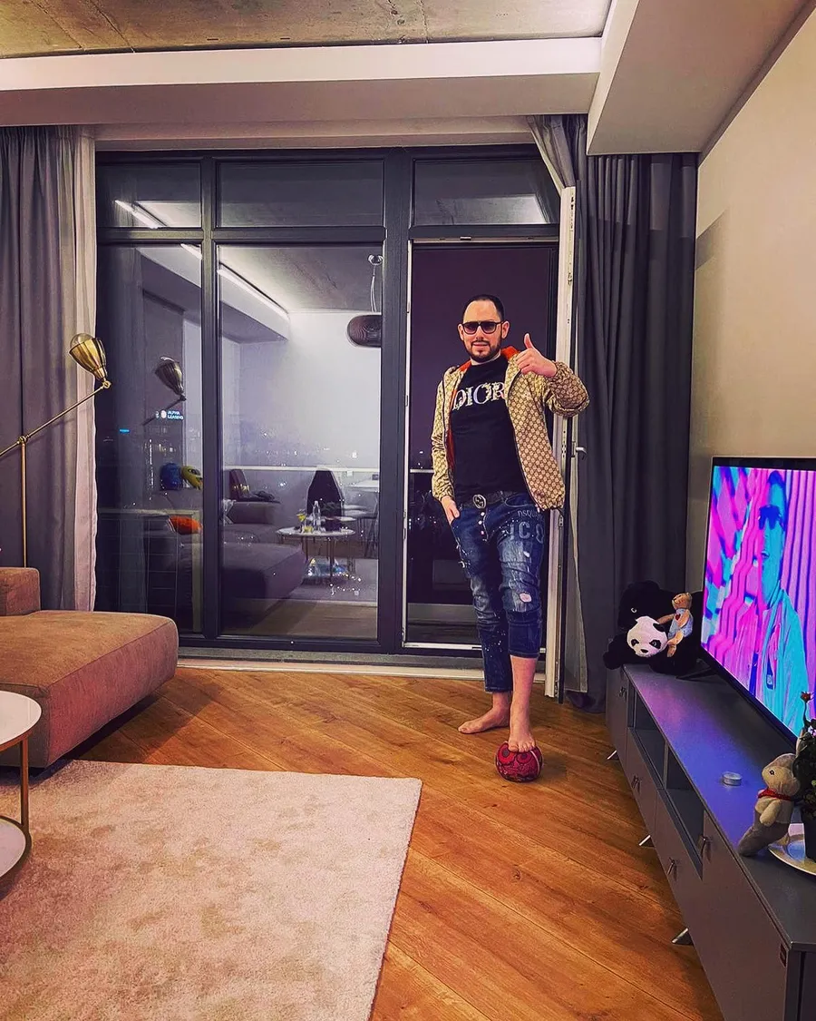 Andrei Versace, îmbrăcat în haine de firmă, în apartamentul său de lux/ Sursa foto: Facebook