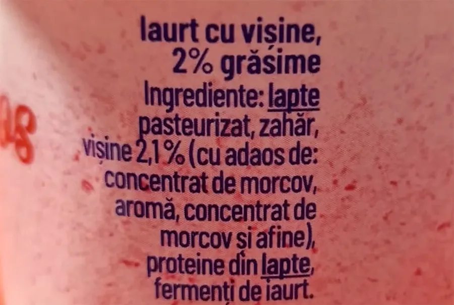 „Nu, acesta nu este iaurtul meu cu vișine”, a spus Dragoș Pătraru, după ce a citit lista cu ingrediente, ironizând sloganul inscripționat pe produs.