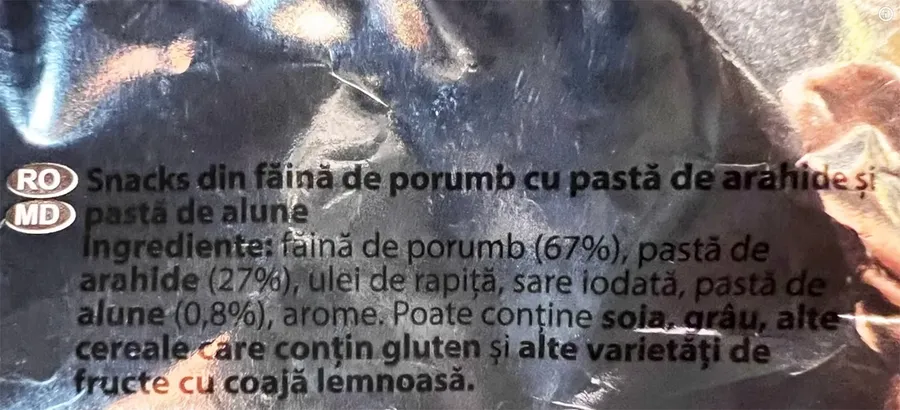 Printre produsele analizate s-au numărat și pufuleții cu gust de arahide și alune de la Star. Dragoș Pătraru a citit cu atenție ingredientele: „făină de porumb (67%), pastă de arahide (27%), ulei de rapiță, sare iodată, pastă de alune (0,8%), arome”.