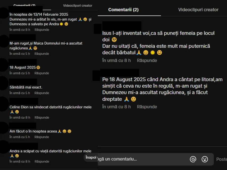 „În noaptea de 13/14 februarie 2025, Dumnezeu mi-a arătat în vis, m-am rugat și Dumnezeu a salvat-o pe Andra. Pe 18 august 2025, când Andra a cântat pe litoral, am simțit că ceva nu este în regulă, m-am rugat și Dumnezeu mi-a ascultat rugăciunea, și a făcut dreptate. Andra a scăpat cu viață datorită rugăciunilor mele”, au fost câteva dintre comentariile bărbatului.