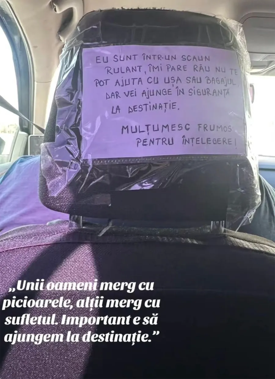 Un mesaj simplu, lipit pe spatele tetierei unui șofer Bolt din România, a reușit să atingă mii de oameni și să devină viral pe rețelele sociale.