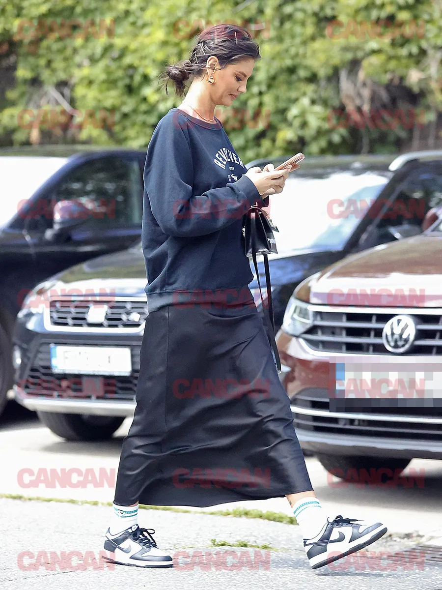 Pe lângă poșeta cu pricina, colega lui Dani Oțil a purtat un outfit all black. A optat pentru un hanorac larg, o fustă lungă, din piele, șosete albe și o pereche de sneakerși asortați. Ramona, super chill girl! 🧚♀️ În ceea ce privește accesoriile, vedeta Antenei a ales un lănțișor, o pereche de cercei mari, aurii, iar părul și l-a strâns la spate, cu mai multe agrafe în aceeași nuanță cu bijuteriile.