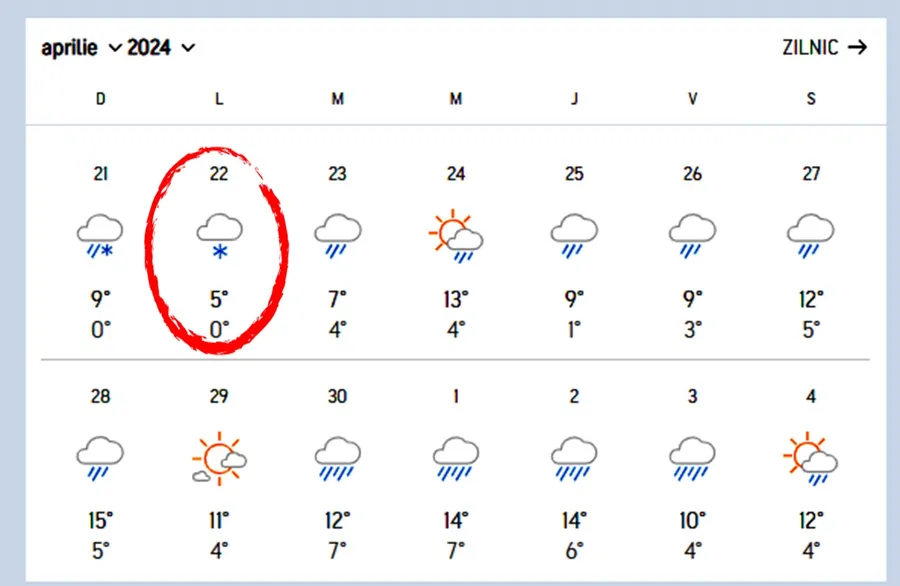 Mai mult, meteorologii Accuweather anunță că nu am scăpat nici de ninsori. Potrivit prognozei meteo actualizate, ultimii fulgi de zăpadă vor cădea în Predeal, în data de 22 aprilie. Aceasta este ultima ninsoare prognozată, urmând că mai apoi vremea să se încălzească.