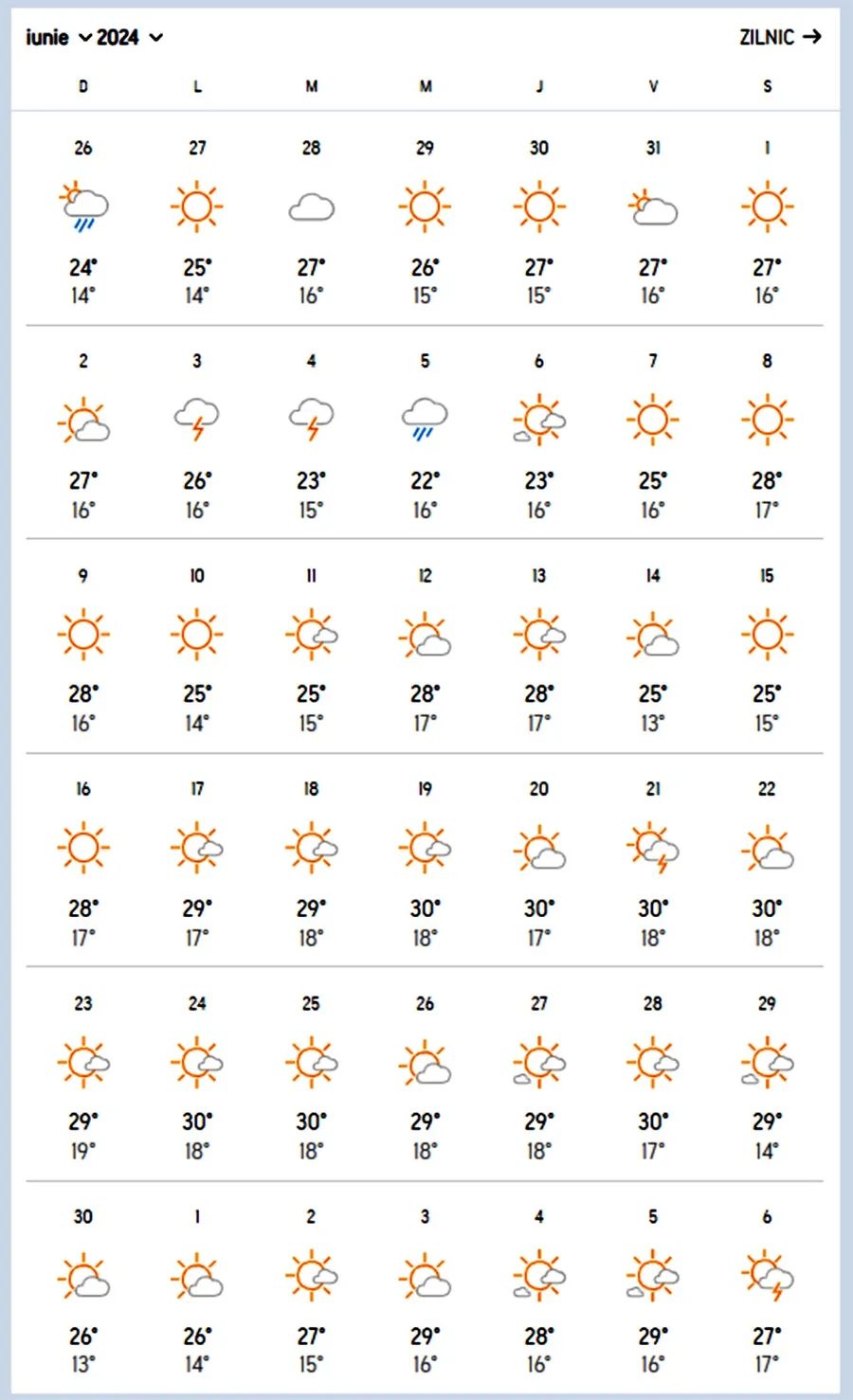 Vor fi zile când temperaturile vor scădea, iar ploile își vor face apariția. Cerul va fi plin de nori în majoritatea zilelor, iar tunetele și fulgerele nu vor lipsi. Cert este că, temperaturile vor fi sub media celor normale, iar bucureștenii vor aștepta zilele caniculare, care nu-și vor face apariția nici în iunie, nici în iulie.
