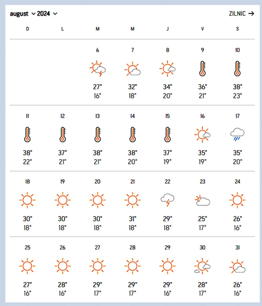 Singura zi din această lună când va ploua în Capitală va fi 17 august. Chiar și atunci, temperatura va fi de 35 de grade Celsius, adică va fi destul de cald. Va fi o ploaie de vară, venită să-i răcorească pe bucureșteni. Ultima săptămână din luna august va fi puțin mai răcoroasă, pentru că termometrele nu vor arăta mai mult de 29 de grade Celsius. Ce-i drept, din popor se spune că după data de 15 august, de Sfânta Maria, vremea se răcorește treptat.