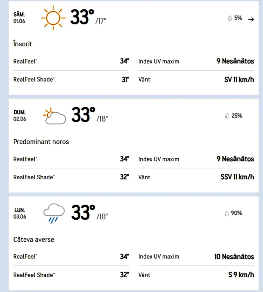De asemenea, Capitala nu este singura zonă ce se va confrunta cu temperaturi ridicate în acest weekend. De exemplu, în Banat termometrele vor arăta chiar și 34 de grade Celsius. Vremea se încălzește în toată țara, iar precipitațiile se vor retrage ușor, ușor.