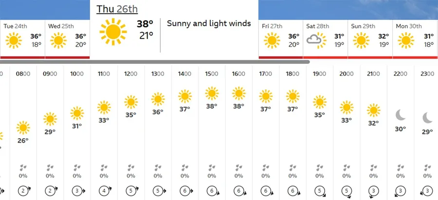 Pe ce dată depășesc temperaturile pragul de 40 de grade Celsius /Foto: bbc weather