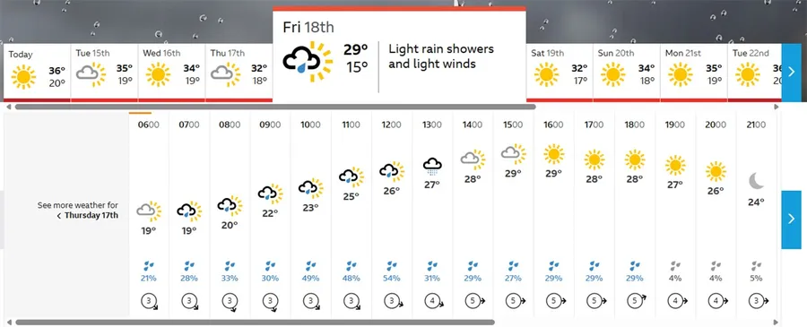 Conform celor mai recente date oferite de BBC Weather, această perioadă de caniculă extremă este pe cale să se încheie. Începând de joi, un front atmosferic rece va pătrunde dinspre vestul continentului, determinând o scădere semnificativă a temperaturilor și favorizând apariția precipitațiilor în majoritatea regiunilor. Schimbarea se va simți treptat, dar va deveni evidentă vineri, când valorile maxime din timpul zilei nu vor mai depăși 27-29 de grade Celsius în cea mai mare parte a țării.