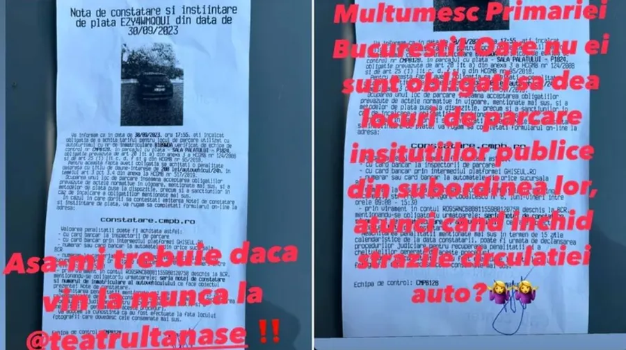 Ok, nu trecem, parcăm, dar ce facem, că după aceea ne amendați. Tocmai am primit o amendă de 200 de lei de la Primăria Capitalei, care, practic își amendează angajații că vin la muncă. Deci, eu trebuie să plătesc 200 de lei amendă că am fost aseară la Teatrul de Revistă și am parcat pe lângă Sala Palatului, pentru că nu aveam unde să parchez”, a povestit Mirela Vaida pe Instagram.