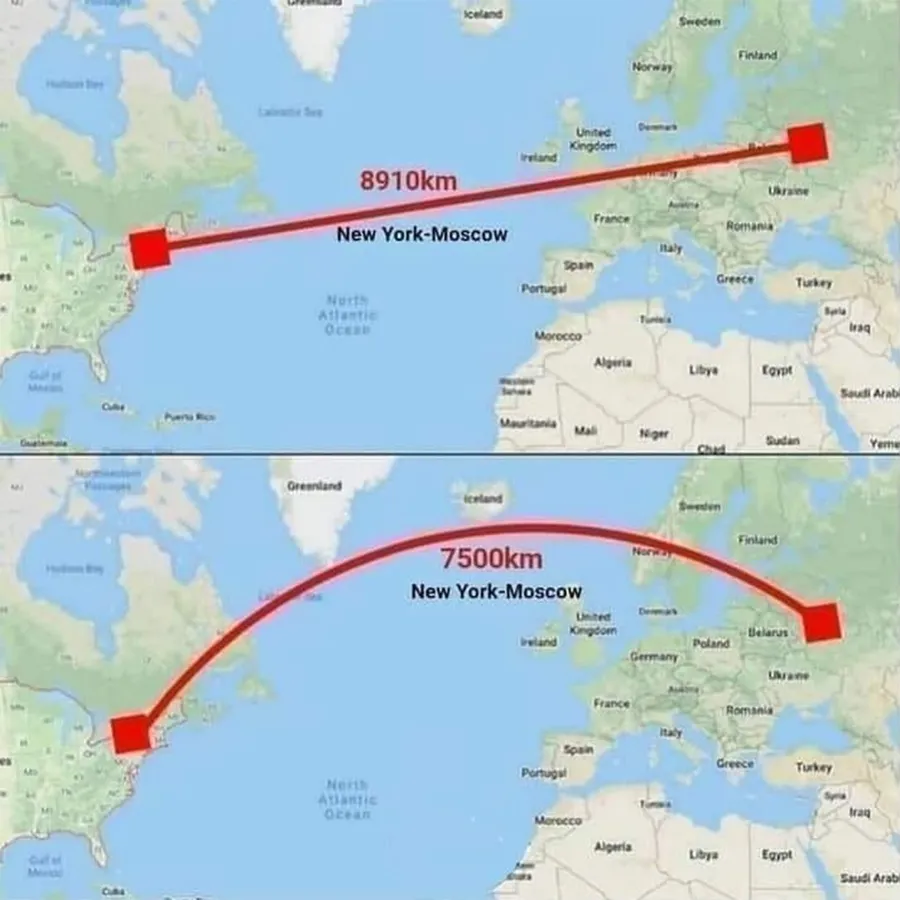 Mulți pasageri observă cu surprindere traseul aparent ciudat al zborurilor transatlantice. De exemplu, un avion care pleacă din Moscova spre New York poate părea că face un ocol prin Groenlanda înainte de a-și continua drumul spre destinație.