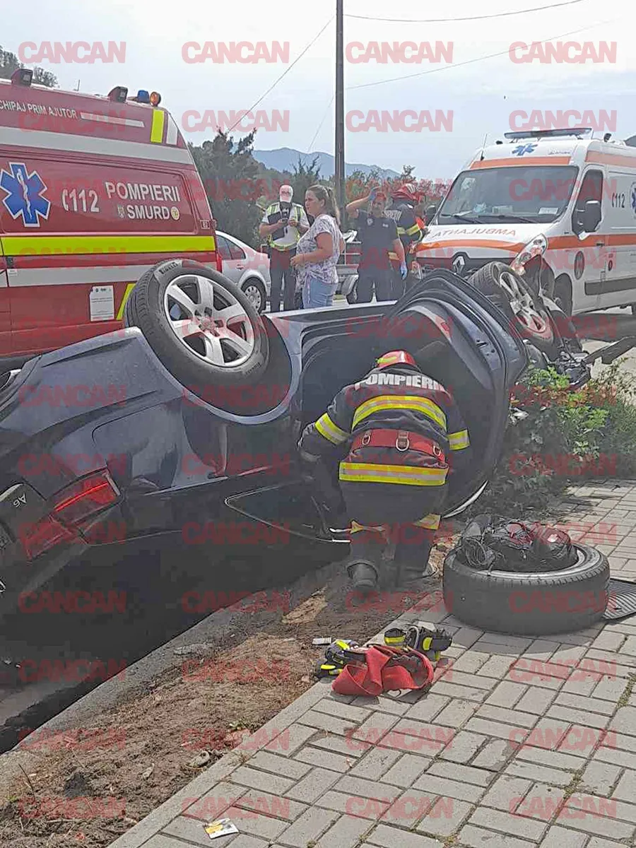 La locul accidentului s-au adunat mai mulți trecători care au oferit ajutor imediat. Imaginile de la fața locului arată ambele vehicule avariate, cu una dintre ele răsturnată.