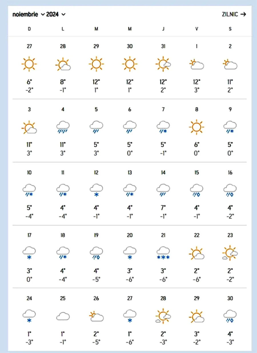 Prognoza lunii noiembrie pentru Predeal/ Sursa foto: Accuweather
