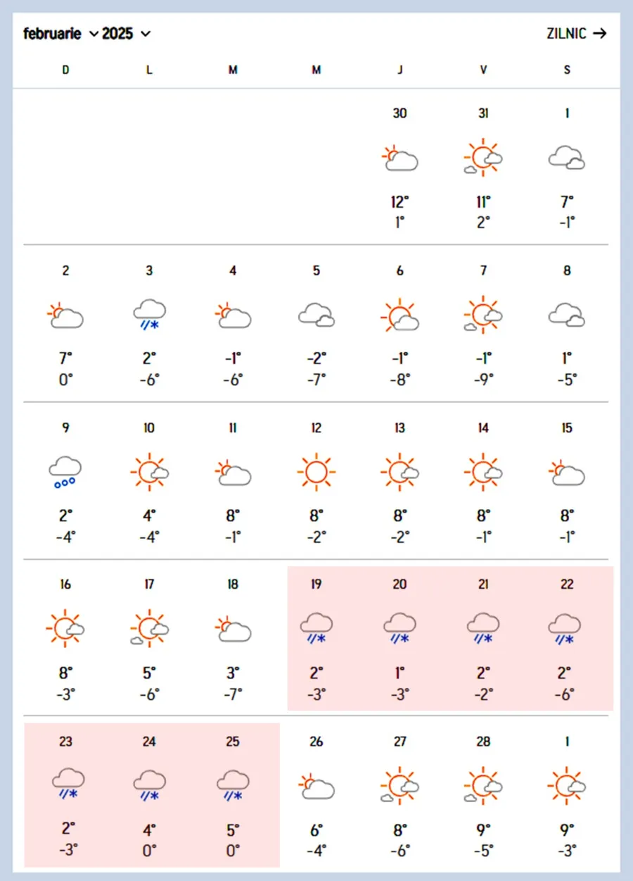 Așa cum spuneam, după un final de ianuarie extrem de călduros, meteorologii anunță că vremea se schimbă, din nou. Românii se mai pot bucura de câteva zile călduroase, însă apoi vremea se va schimba radical. Începutul lunii februarie aduce temperaturi mai scăzute, ceva mai apropiate de normalul acestei perioade. De asemenea, meteorologii anunță că revin și ninsorile.