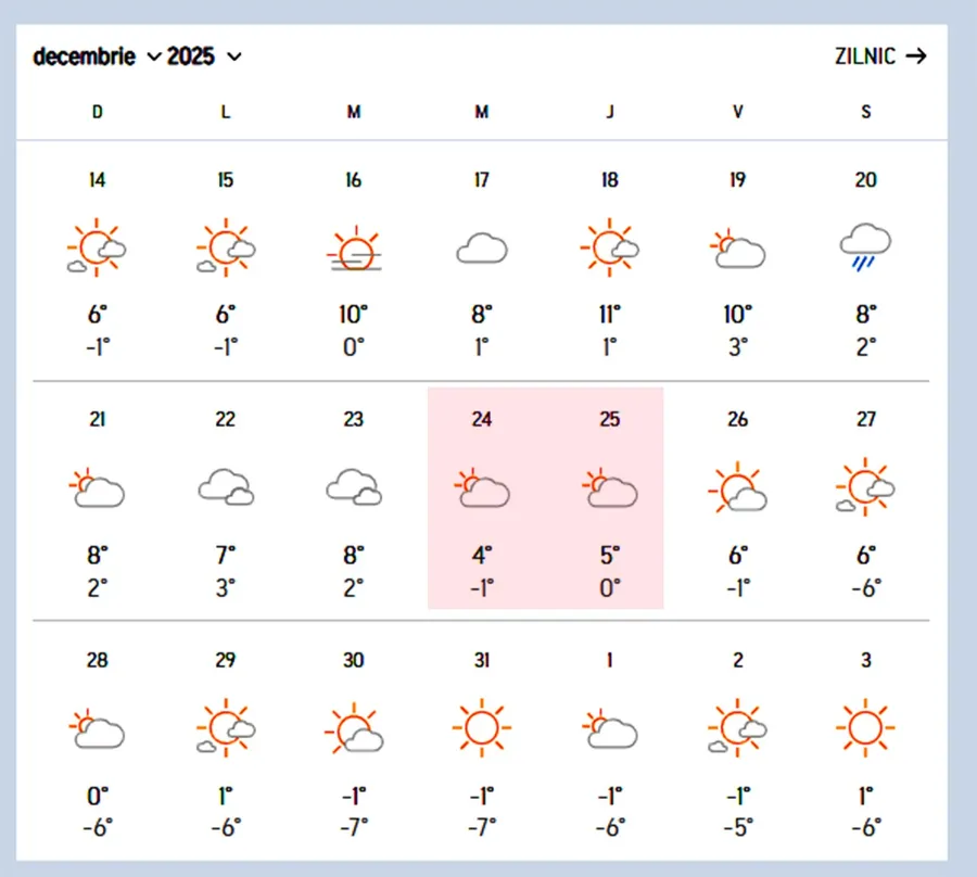 Datele actualizate arată că prima parte a lunii decembrie va fi marcată în mare parte de vreme mai blândă decât media climatologică, cu temperaturi care tind să rămână pozitive și cu precipitații ce vor fi mai degrabă sub formă de ploaie sau lapoviță decât ca ninsoare. În zilele imediat următoare, valorile termice nu vor coborî semnificativ, ci se vor situa peste pragul de îngheț în orele după-amiezii, ceea ce reduce semnificativ șansele ca ninsoarea să se mențină la sol.