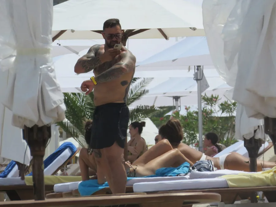 Apoi a apărut Alex Bodi. S-a așezat lângă iubita lui, la plajă, cu ochelarii pe ochi și a uimit din nou cu impresionantele tatuaje de pe tot corpul. Nu a stat mult, pentru că telefonul l-a deranjat. Și-a lăsat ”modelul” pe șezlong și a început convorbirea.
