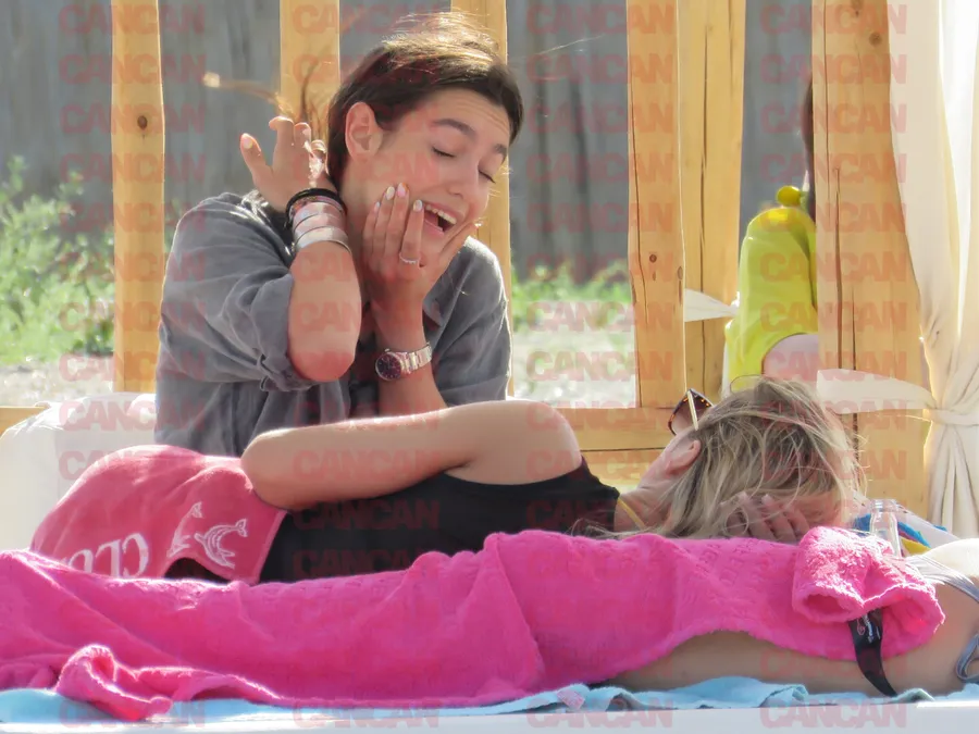 Și, tot așa, uitându-se pe telefon, a izbucnit. Nu ai mai văzut-o niciodată așa pe Alexia. Simpatică și haioasă foc. S-a schimonosit puțintel, iar amicele ei s-au băgat în joc. Dar ea, fata celebrei Esca de la PRO TV, nici că s-a clintit de pe marginea șezlongului. Acolo a stat țintuită, de parcă ar fi primit pedeapsă. Doar surâsul te face să crezi că e alarmă falsă!