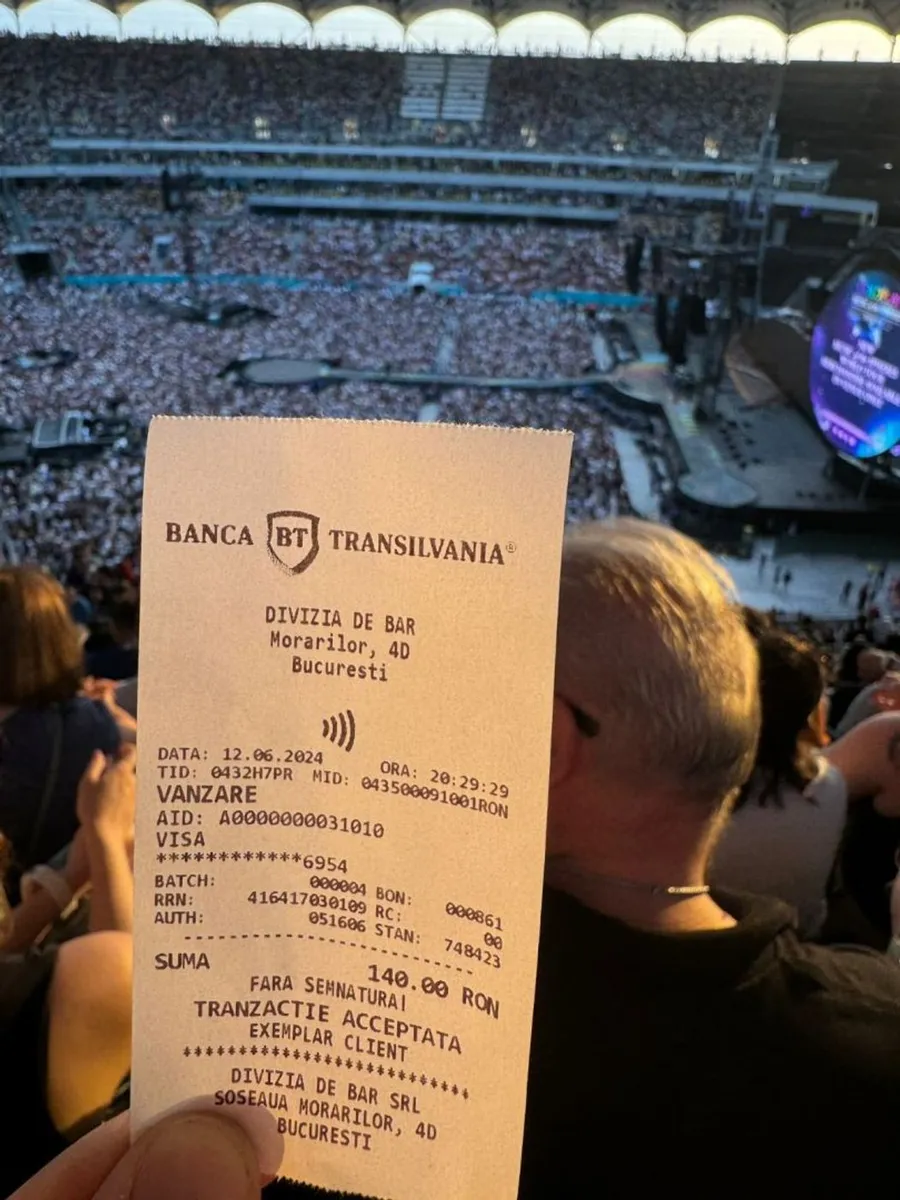 Nu e banc! Câți lei a plătit un bucureștean pentru 2 ape, 2 doze de suc și 2 porții de popcorn la concertul Coldplay