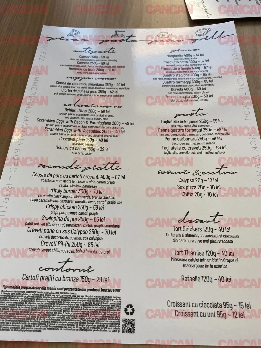Într-unul dintre restaurantele din Mamaia, turiștii trebuie să scoată din buzunar 59 de lei pentru banala salată Caesar. De asemenea, cei care vor să se răsfețe cu un burger trebuie să plătească 70 de lei, iar pofticioșii care își doresc o porție de coaste de porc cu cartofi trebuie să achite 87 de lei.