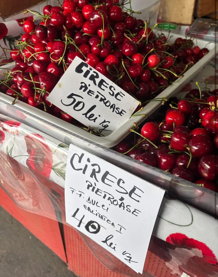 În ultimii ani, prețul cireșelor de mai au crescut semnificativ, urmând să scadă treptat pe măsură ce recolta devine mai abundentă. În zone precum Piața Unirii sau Piața Amzei, un kilogram de cireșe poate ajunge să coste până la 100 de lei. Comercianții se laudă cu marfă din livezi autohtone, însă în cantități limitate – motiv pentru care prețul lor este atât de mare.