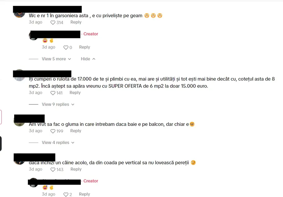 „Am vrut sa fac o glumă în care întrebam daca baie e pe balcon, dar chiar e.”, a scris cineva.