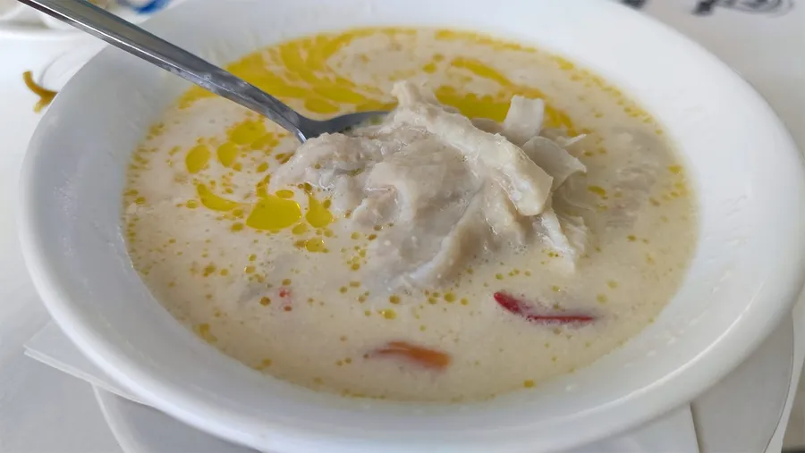 După ce a comandat o porție de trei mici, a luat decizia să mai adauge în comanda sa și o ciorbă de burtă, pentru a-și completa experiența culinară în Thassos și să îl readucă la gusturile din România.