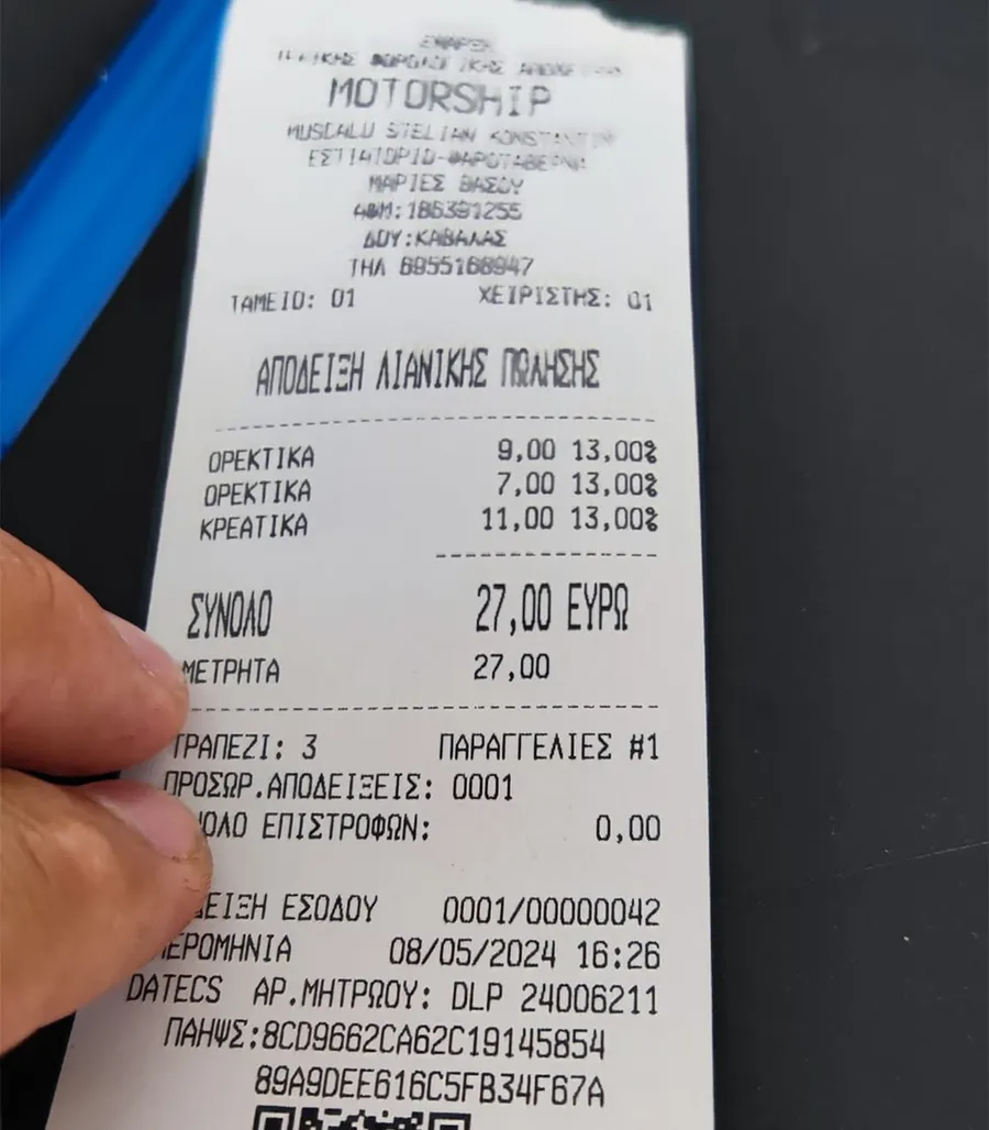 „Prima și ultima masă din Thassos de săptămâna asta la tavernă am decis să fie la MotorShip sau Motor ship din Skala Maries sau Skala Marion. Eu doream să le testez bougiourdi-ul, EA avea poftă de o ciorbă. Cum aveau doar de burtă azi, că le-ați terminat alte feluri de ciorbă din meniu, am mâncat doar eu – și mi-a plăcut. A fost ce trebuie, mai bună decât patsas-urile încercate până acum pe insulă.Bougiourdi-ul bun, de top, dar nu de locul 1, încă. Dar urmează, că sunt motivați să îl servească turiștilor pe cel mai bun. Sunt sigur că feedback-ul meu „prețios” o să îi determine și mai mult să-l echilibreze și să atingă perfecțiunea.La felul doi, ne scuzați, dar n-am putut să refuzăm oferta de mici românești – că nouă din diaspora ne e tare dor de ei. Și au fost perfecți!Am petrecut câteva ore împreună și uitasem să mai plecăm. Dacă mai stăteam de vorbă prindeam și cina .În ultima poză aveți și prețurile, că tot erați curioși”, a scris românul pe un grup de Facebook.