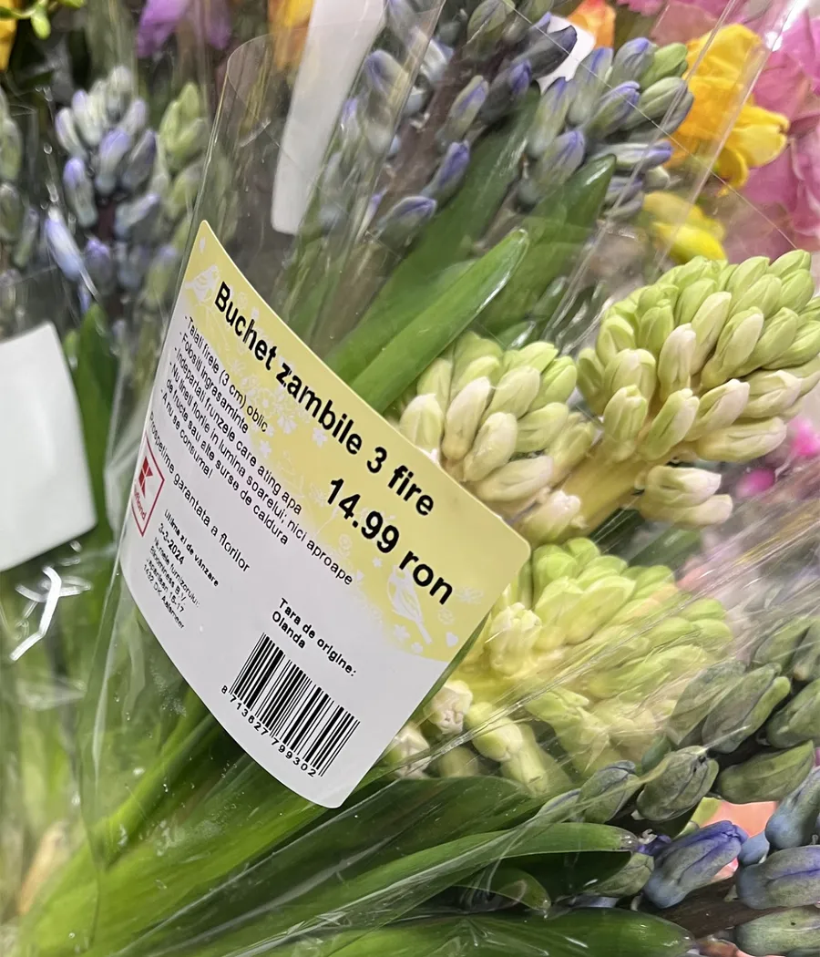 Nu e o eroare! Câți lei costă 3 zambile în Kaufland București, acum, de 1 Martie