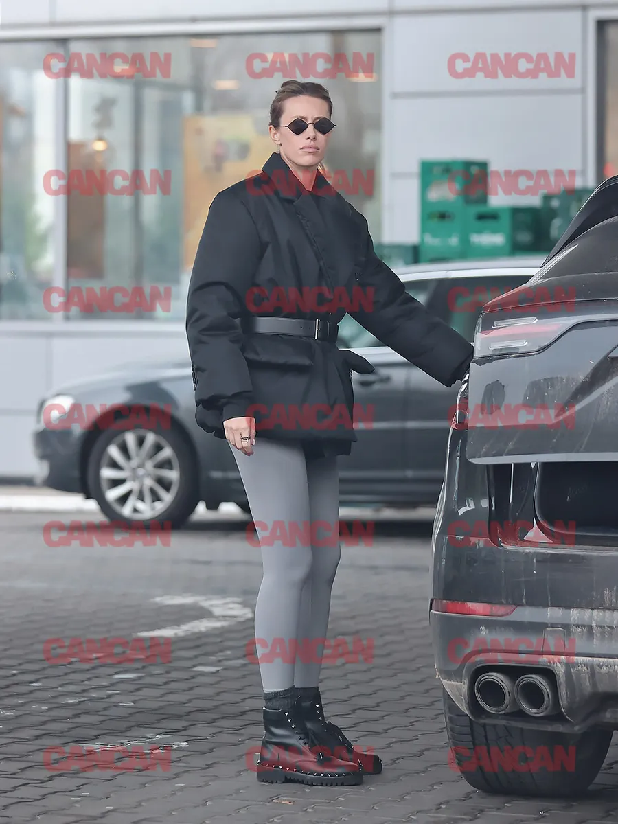 Mașina sa, Porsche Cayenne, părea însă să fi trecut printr-o aventură cu noroi. Asta în timp ce soția lui Oțil arăta fix invers. Aranjată, super fit, într-o ținută simplă, dar fără cusur. Ea a optat pentru o combinație comodă. Colanți gri, mulați, ce i-au pus perfect în valoare silueta lucrată, geacă neagră, prinsă în talie cu o centură ce-i accentua linia coprului și ghete în aceeași nuanță, cu talpă groasă, perfecte pentru vremea rece. Părul, prins în coadă, iar ca accesoriu ochelari de soare, chiar dacă lumina nu era tocmai tropicală. Dar de, o adevărată divă are nevoie și de acest accesoriu!