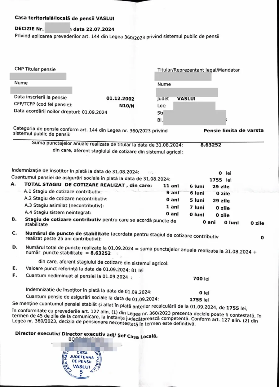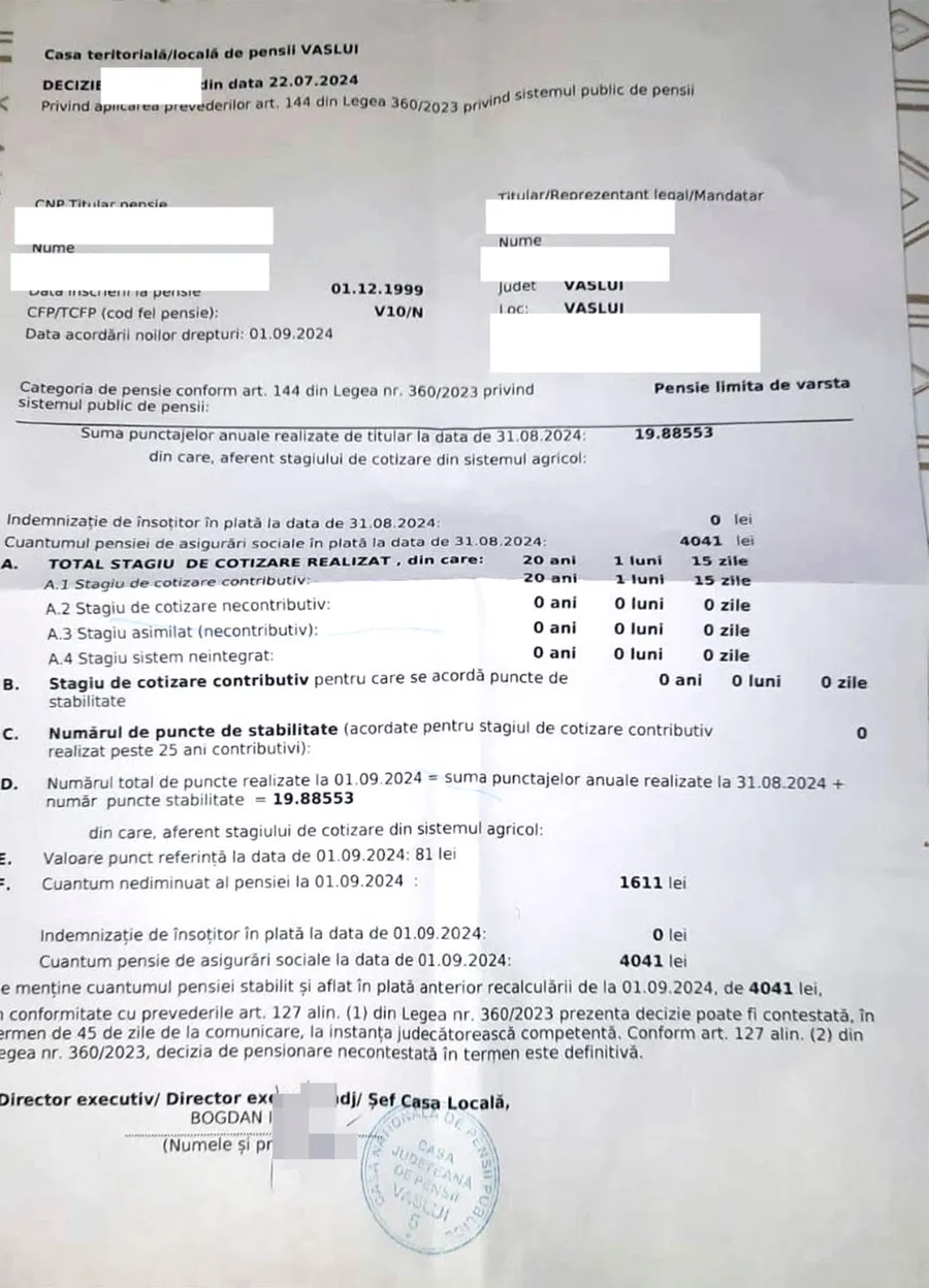 Nu este o eroare! Câți lei primește pensie un nevăzător din Vaslui, după recalcularea de la 1 septembrie 2024