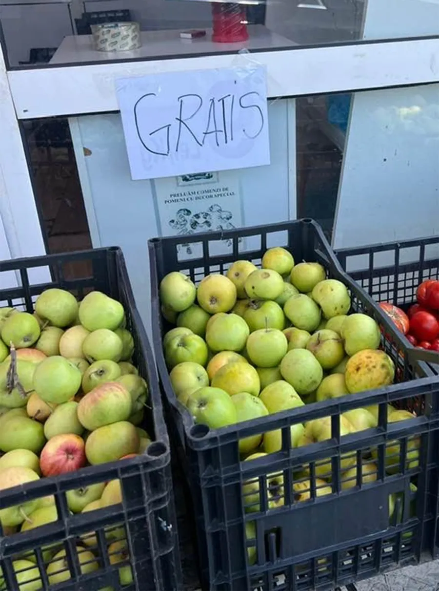 Așa că bărbatul a decis să vină totuși în sprijinul românilor și a hotărât să își dea produsele gratis. Acum producția de mere este în floare, iar bărbatul „vinde” un kilogram de mere cu 0 lei.
