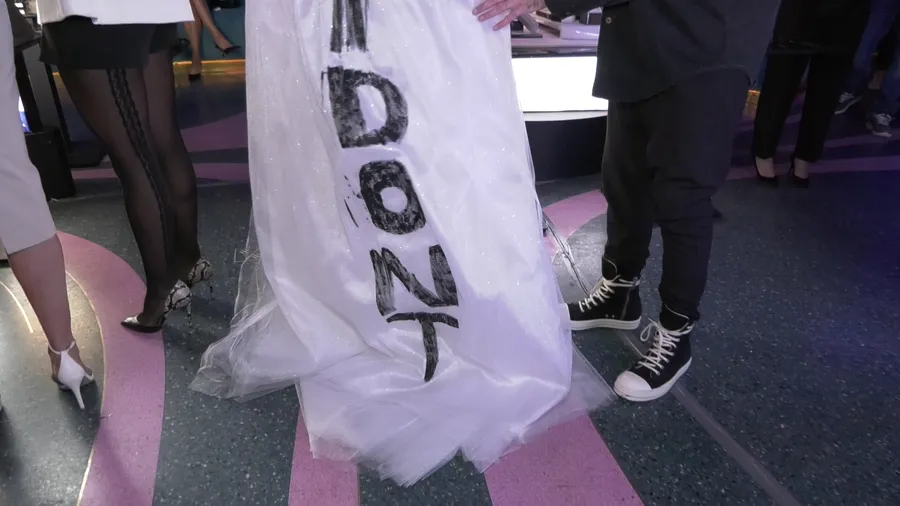 Pe spatele rochiei lui Ruby a fost scris mesajul „I don’t”, semn că nu se va căsători prea curând (Foto: captură video)