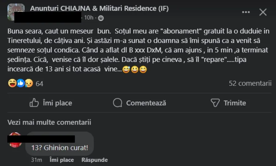 „Dacă tot ați expus infidelitatea soțului aici, era mult mai frumos să ne dați și numele maseuzei nepricepute, poate mai sunt alți soți ca al dumneavoastră, care o solicită și merg tot așa constant. Măcar să îi faceți publicitate”, a fost alt comentariu.