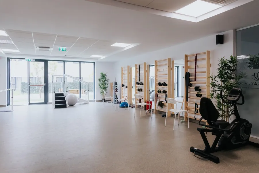 - Dotările centrului includ o bază de recuperare, săli de kinetoterapie și fizioterapie, o piscină de aquaterapie, un restaurant cu bucătărie proprie, o cafenea, salină, salon de înfrumusețare, farmacie, clinică medicală și chiar și un cabinet stomatologic.