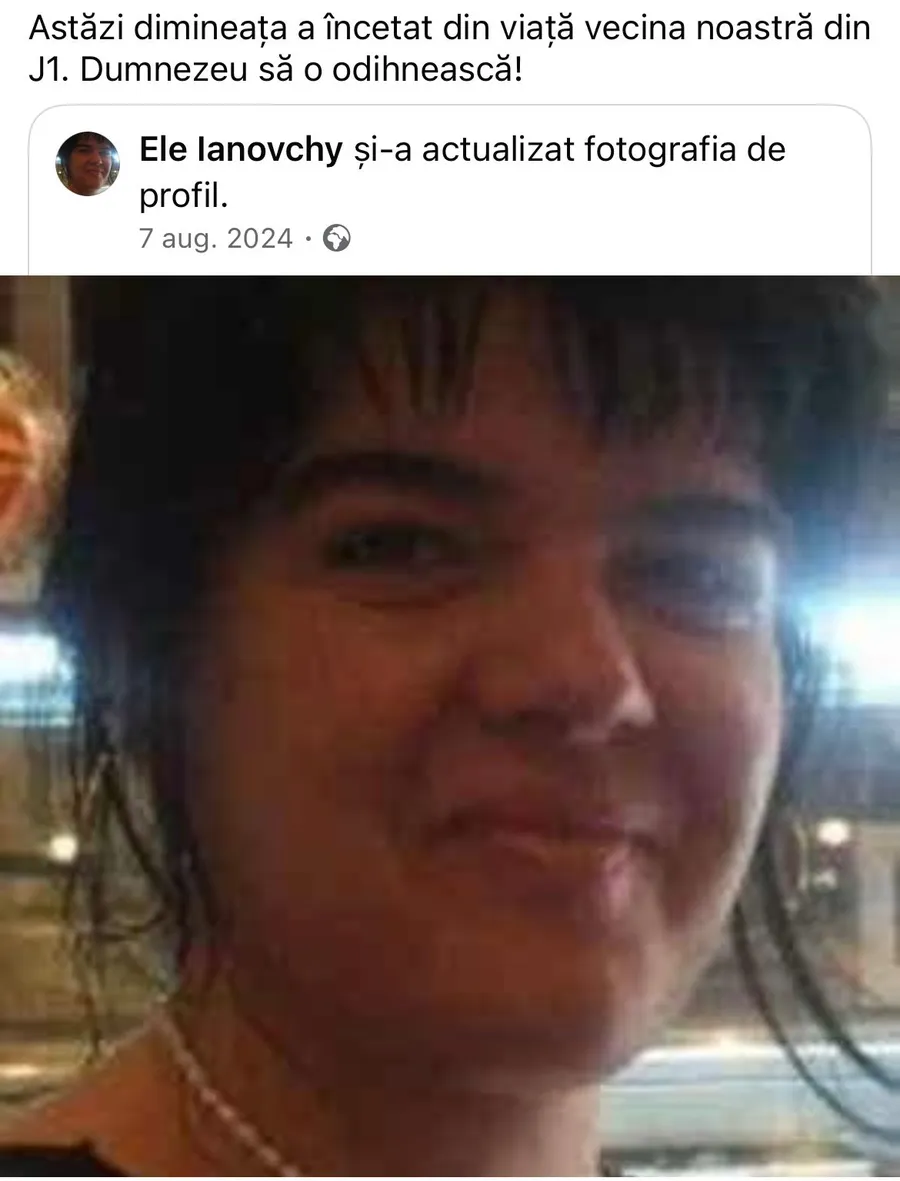 Din primele cercetări, se pare că este vorba despre Ele Ianovchy, în vârstă de aproximativ 50 de ani, s-a aruncat de la etajul 9 al unui bloc din complex. Victima ar fi avut mai multe probleme de sănătate, ceea ce îi face pe anchetatori să creadă că a fost vorba despre un gest premeditat. Într-o postare pe o rețea de socializare, vecinii femeii au transmis un mesaj de condoleanță: ”Astăzi dimineață a încetat din viață vecina noastră din J1. Dumnezeu să o odihnească”.