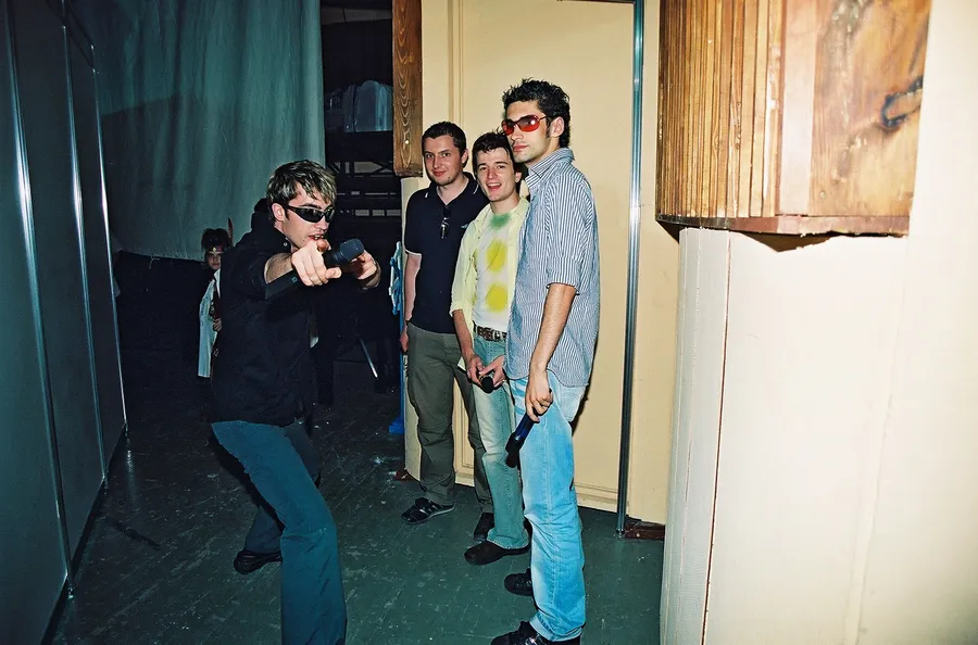 În poză îi vedem pe Dan Balan, Radu Sîrbu și Arsenie Todiraș (cunoscut ulterior ca Arsenium). Sunt în spatele scenei. Mă rog, „backstage” e mult spus. Sunt efectiv după cortină, cu microfoanele în mână, așteptând să intre. Mai ahi, mai ahoho, mai un pas înapoi, mai un pas în față. Emoții. Tinerețe. Zero figuri.
