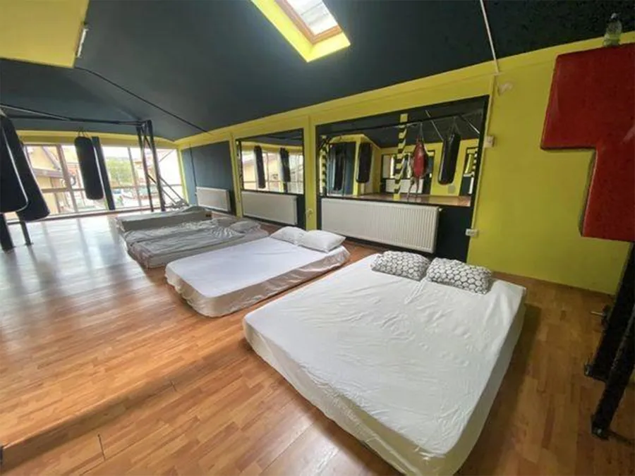 Ei bine, un tânăr a decis să închirieze sala de box. A amenajat-o ca la carte, cu saltele și toate obiectele necesare, după care a pus oferta în mediul online. În locație, se pot caza 8-10 persoane, iar prețul pentru cele 5 nopți este de 5.000 de lei.
