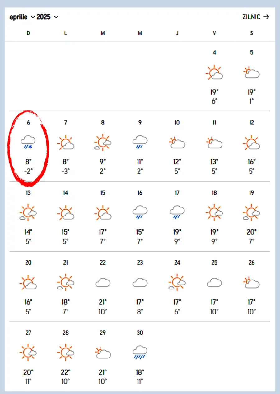 Așadar, duminică, 6 aprilie, vremea rece, ploile, lapovița și ninsoarea vor acoperi o mare parte din țară și vor da peste cap planurile de weekend.