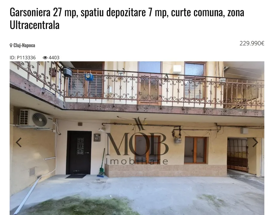 Discuțiile aprinse în jurul pieței imobiliare au fost alimentate recent de un anunț incredibil din Cluj-Napoca. În inima orașului, o garsonieră de doar 27 de metri pătrați a fost scoasă la vânzare pentru colosala sumă de 229.990 de euro. Cu un spațiu de depozitare suplimentar de 7 metri pătrați și acces la o curte comună, proprietatea promite „confort și lux”, dar prețul pe metru pătrat a lăsat pe toată lumea fără cuvinte.