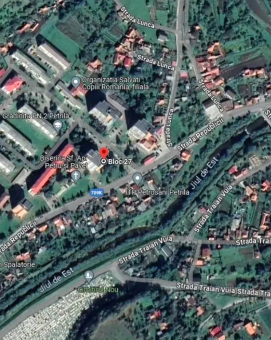 Potrivit site-ului de imobiliare Storia, această garsonieră, cu o suprafață utilă de 28,40 mp, este situată în cartierul 8 Martie din Petrila, o zonă periferică, dar bine conectată prin mijloace de transport în comun. Locuința este amplasată la etajul 9 al unui bloc construit între anii 1970-1980, cu regim de înălțime P+9E. Blocul beneficiază de o structură solidă din beton armat și închideri perimetrale din cărămidă, însă se află într-o stare generală de uzură, specifică imobilelor din această perioadă.