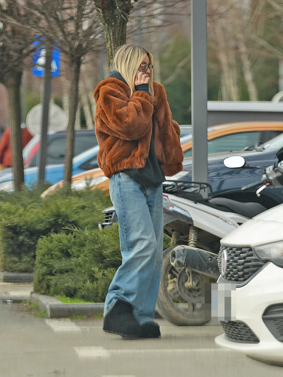 După ce s-a dat jos din Uber, blondina nu s-a grăbit să meargă la căldurică, în casă. A preferat să rămână afară și să poarte o conversație telefonică care părea că nu se mai oprește.