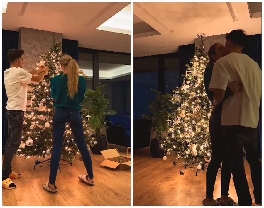 Cei doi se comportă deja ca o familie, iar recent au intrat în spiritul sărbătorilor de iarnă. Aceștia au împodobit bradul împreună, iar dragostea plutea în aer. Gesturi tandre, priviri complice, săruturi și îmbrățișări, toate au fost incluse în „dansul” lor din jurul bradului de Crăciun.