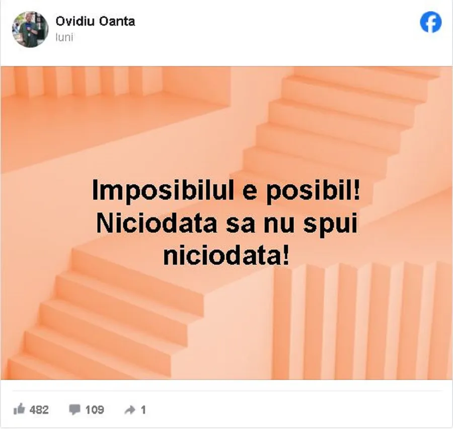 La începutul acestei săptămâni, Ovidiu Oanță ar fi dat de înțeles că în viața sa au avut loc schimbări. În cadrul unei postări pe Facebook, unul dintre cei mai vechi reporteri de la Pro Tv a scris faptul că: ”Imposibilul e posibil! Niciodată să nu spui niciodată”.