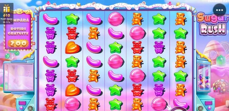 „Sugar Rush” îți prilejuiește o întoarcere în copilărie. Pe grilă găsești toate elementele dintr-un parc de distracții: baloane, ursuleți și, mai ales, dulciuri. Slotul este construit pe mecanism Megaways. Astfel, pentru a avea câștig, nu este obligatoriu ca simbolurile de același fel să se oprească pe coloane adiacente de la cea mai din stânga spre dreapta. Este suficient să obții minim 5 pictograme conectate pe verticală sau pe orizontală.