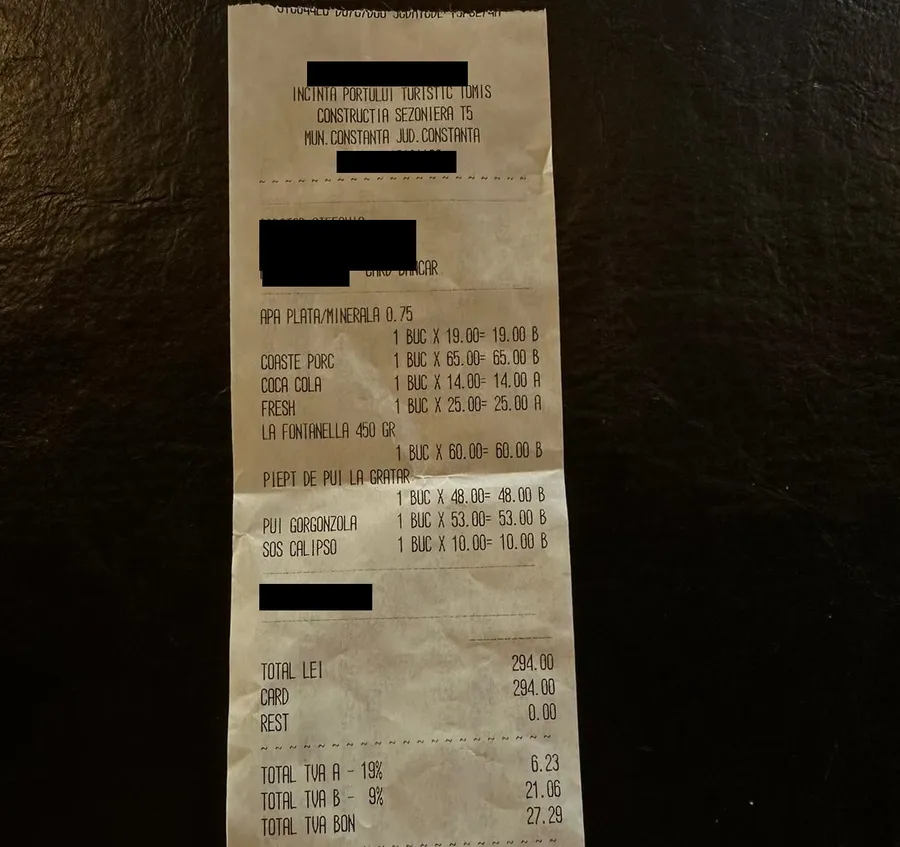 Nota de plată a unor turiști în PortulTomis / Foto: CANCAN.RO