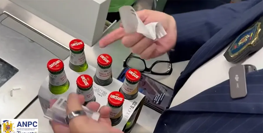 Șeful ANPC nu a stat prea mult timp pe gânduri și a mers să verifice personal situația. A luat de pe raft același produs reclamat, un pachet de 6 beri Ursus, afișat la prețul de 22,45 lei, și s-a prezentat la casa de marcat. Acolo, surpriză! Sistemul indica un total de 29,94 lei, cu peste 7 lei mai mult decât prețul afișat.
