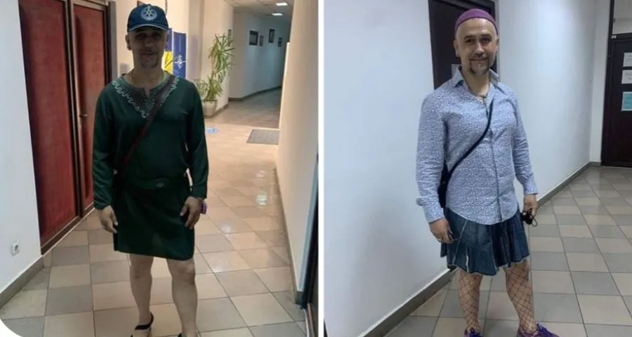 Imaginile cu Mihail Bucur, celebrul polițist în fustă”, au ajuns virale pe rețelele de socializare după ce s-a pozat în mai multe ținute feminine/ sursă foto: Facebook