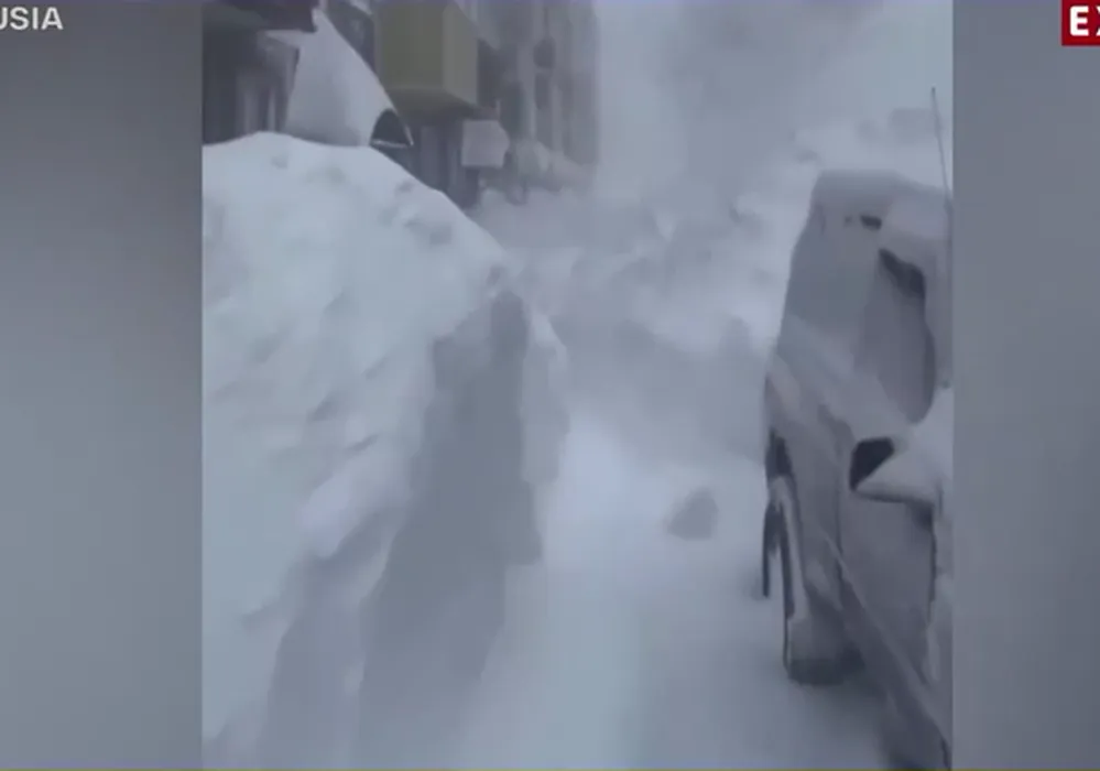 3 metri de zăpadă, după cel mai puternic viscol din ultimii 150 de ani în Rusia/ sursă foto: captură video
